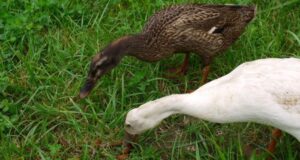 Prírodná záhrada v auguste. Kačky indický bežec a presvetľovanie